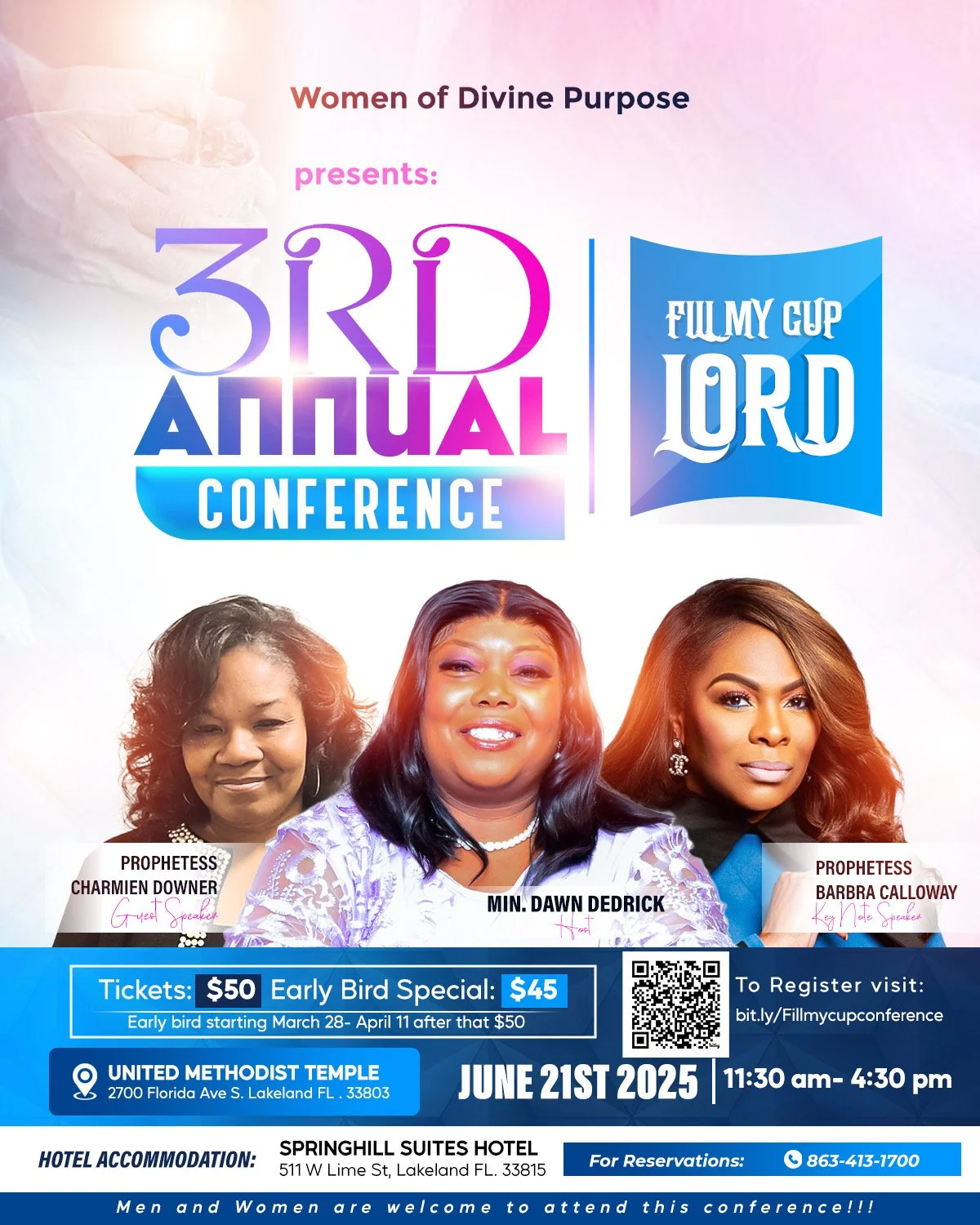 3rd Annual Conference JUNE 21 Springhill Suites Hotel Lakewood, FL11:30am - 4:20pm Register Now! Offerings Welcome! IN PERSON OR IN ADVANCE! CashApp PayPal